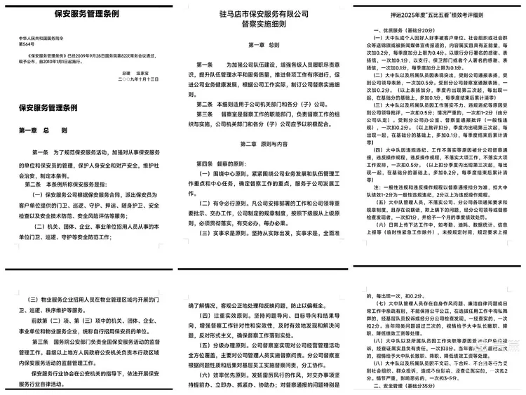此次专项学习教育,是工行中队夯实队伍根基、严明纪律规矩、提升服务质效的关键举措,具有极强的现实意义与实践价值。学习《武装押运操作指南》,旨在让全体队员明晰安保工作的法律边界、职责权限与行为准则,树立依法履职、规范执勤的法治意识,杜绝违规操作、履职失范等问题,筑牢安保工作法治根基;钻研《督查实施细则》,能够进一步明确队伍管理标准、督查流程与整改要求,推动日常监督常态化、精准化,及时纠治作风散漫、纪律松弛等顽疾,营造令行禁止、严谨务实的工作氛围;吃透《五比五看考评办法》,则是树立鲜明的实干导向,通过比作风、看担当,比纪律、看规矩,比服务、看质效,比技能、看水平,比奉献、看实绩,激发队员争先创优、履职尽责的内生动力,打造一支纪律严、作风硬、能力强、口碑好的安保铁军。三者相辅相成、有机统一,既是规范队伍管理的“硬标尺”,也是提升安保服务的“动力源”,更是守护金融安全的“压舱石”。